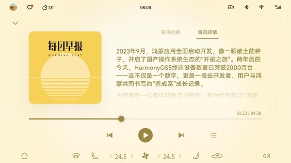 鸿蒙智能座舱新功能上线:驾驶途中畅听每日早报,让你的资讯不断线